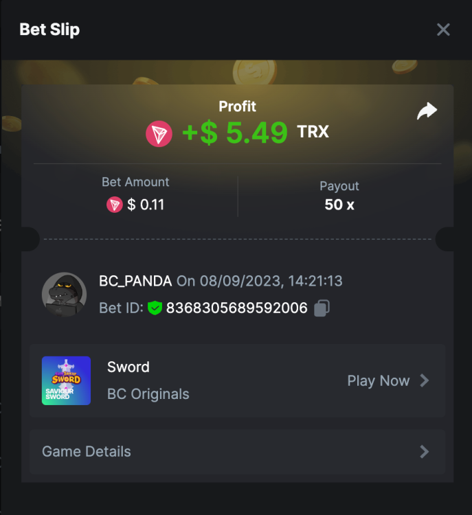 $5k Prestige Saviour Sword Challenge #105 DURATION: 8th SEP - 15th SEP 13:20 pm UTC Greetings, BC.Game enthusiasts! The thrill of wielding the sword intensifies! Step into the Saviour Sword Challenge, an epic battleground where skill meets destiny, and vie for a chance to emerge victorious with honor and rewards. Happening from 8th September to 15th September, this is your golden opportunity to demonstrate your expertise in Saviour Sword and share a grand prize pool of $5,000! Whether you're a master swordsman or a newbie seeking an adventure, this week is packed with unparalleled excitement and bountiful rewards. So, prepare your strategies, aim for the top spots, and may fortune accompany your every swing! Let's conquer the leaderboard! What's the Challenge? Get the highest multiplier you can on BC.Game's in-house slot, Saviour Sword. In case of a tie, the participant with a higher bet amount will be given the advantage. If there is a tie in the amount and payout, the one who posted or edited his post first will be considered in the Ranking. How to Enter To enter, copy the link of the bet you'd like to submit. Once you've copied it, paste it as a reply to this thread like so: Link: https://bc.game/#/sd/11HOA0U4BN95W7 In the same post, upload a screenshot of your win by clicking the game ID WITH VIEW IN USD mode ENABLED (accessible at the bottom of dropdown menu for your wallet up top. This way, we can ensure that your bet indeed met the minimum requirement at the time of placing it: Link: https://bc.game/#/sd/11HOA0U4BN95W7 Minimum VIP Minimum VIP 4 with phone verified will be eligible! Minimum Payout Minimum payout to qualify is 10x Minimum Bet Size $0.08 USD equivalent Eligible Coins All coins are eligible (excepting JB, and BCL) Available Prizes GENERAL TERMS Please combine all of your hits together in a SINGLE post. Edit your existing post for additional hits, don't create a new post. Bets must be posted within 24 hours of placing bet in order to keep things fair for everyone. Bets must be made during the specified time window stated above. This thread will lock automatically when the time period is over. One (1) entry per household. Anyone found attempting to win multiple prizes will be disqualified from this challenge as well as all future challenges. Furthermore, you will go on the WALL OF SHAME for all to see that you are a scam. Scam 4 Scam. Failure to follow instructions will result in your submission being null and void. By entering this challenge, you acknowledge that BC.Game has the final decision on results and placement. Payouts will be distributed after the event is finished. Please note that it could take up to 7 days after the completion of the event.
