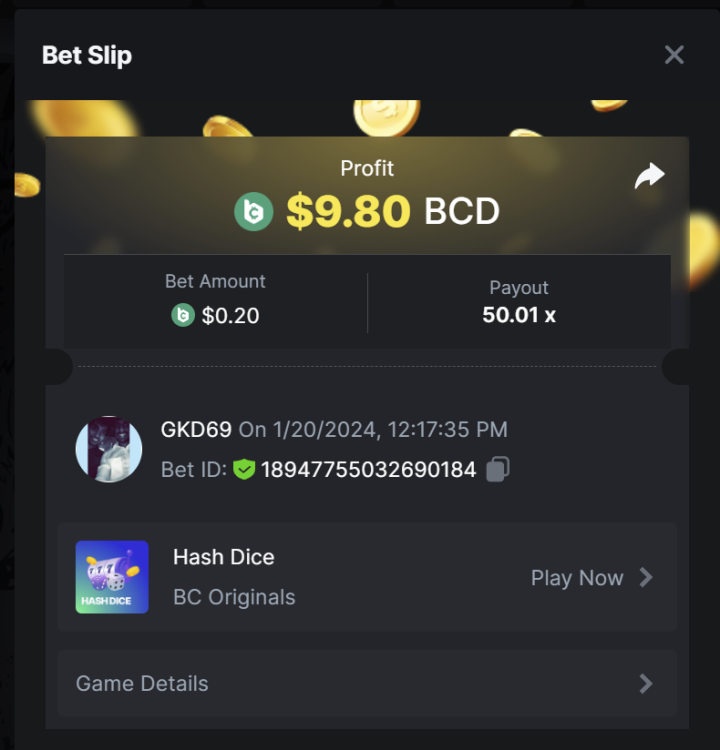 6. Bet ID: 17542544812409468 https://bc.game/#/sd/119GBLDEB6UDQR