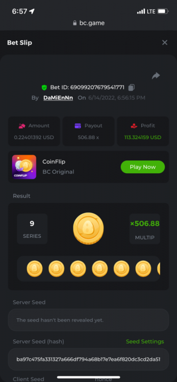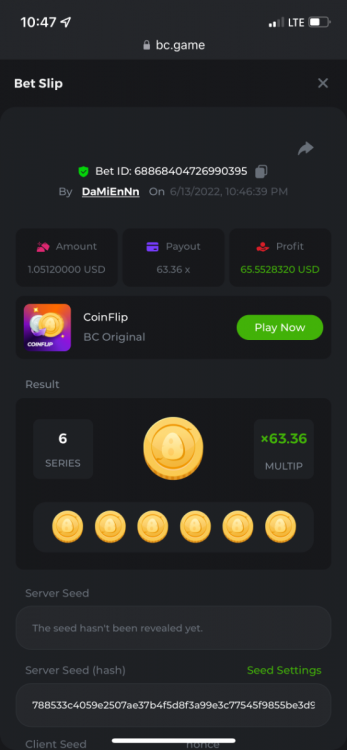 1. https://bc.game/sd/?sd=10OY9ADWZQX4B7 35.5x $0.1 bet https://bc.game/sd/?sd=10OY9YIM4Q25N7 36x $0.20 bet https://bc.game/sd/?sd=10OYBIE0SQC8B7 21.5x $0.10 bet